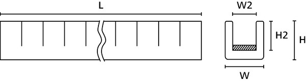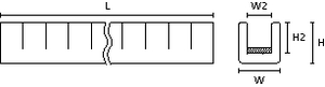Grommet strip, T=1.6mm, W=3.7mm, W2=1.6mm, H=5.2mm, H2=4.0mm, -20 °C to +50 °C, black, 20m