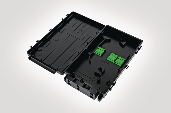 | Technical Description | The Multi Customer Connection Enclosure (MCCE) is a Building Entry Point (BEP) enclosure which manages Point to Point (P2P) network configurations. The closure is manufactured from UV stable ABS with a hinged lid which locks in the open position to allow for quick and clear access to the internal fibre. The closure has 6 entry/exit ports at the bottom of the closure which are suitable for cables and ducts up to a maximum diameter of 8mm. A loop through facility allows for single fibre elements to be removed and spliced whilst the remaining fibres can be fed on to the next connection point and a splice capacity for up to 18 3A splices. Mechanical fixing is provided to secure all incoming/outgoing cables/blown fibre ducts and to provide strain relief where necessary. |