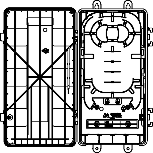 The MDU S2 is an IP55/IK08 rated enclosure manufactured from light grey (RAL 7035) polycarbonate. The enclosure can be supplied in several colours, including black, white and grey. It has provision for a moulded customer logo if required. The enclosure consists of 3 separate fibre management areas: -- Inbound Cable Management The lower section of the enclosure has four dedicated entry ports to support both mid-span and spur fibre cables with strain relief for all incoming feeder cables. This area provides positive fibre management and loop storage for a maximum of 144 fibres. -- Fibre Splice Management Area A dedicated splice management tray sits above the fibre storage area and has capacity for up to 48 x 3A heatshrink splices (when double stacked), with a maximum splice protector length of 60mm. The tray provides separate fibre management areas for 250μm fibres and 600/900μm pigtails whilst maintaining 30mm minimum bend radius throughout. -- Drop Cable Management The drop cable management area consists of a removable upper fibre management tray which presents 24 x LC simplex adapters for connection to industry standard pre-terminated drop cables and prevents access to the lower splicing area when in place. Fibre management is provided on the underside of the tray for 600/900μm pigtails allowing the spare cable to be maintained separately from the 250μm feeder cable fibres. Retaining features allow up to six PLC splitters to be mounted allowing for both 1x4 and 1x8 PON split ratios to be accommodated. The fibre management maintains a 30mm minimum bend radius throughout with a cross over facility to allow for alternative routing requirements. The LC simplex adapters on the customer facing side of the tray are angled and spaced to allow for inspection prior to connection. 12 anchor guides are provided for securing the drop cables. Drop cable exit ports use a split seal and collar to ensure performance in excess of IP55. |