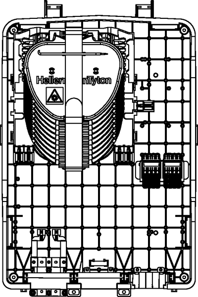 The HellermannTyton S4 wall mountable enclosures are suitable for both internal and external applications and have been developed for use within the last mile of the FTTX network. The medium MDU enclosure is 470 x 307 x 147mm (H x W x D) and manufactured in light grey (RAL 7035), UV stable ABS (Acrylonitrile Butadiene Styrene) and has an IP54, IK08 and UL-94 V0 rating. The MDU S4 cover can be customised with a moulded or labelled customer logo. The S4 C (Connectorised) can be configured with the large angled IR Fibre Management System (FMS) which accommodates 10 SE IR MKII splice trays giving a maximum of 240 ANT splices and up to 6 PLC splitters. The metal connector plate holds 12 LC APC Quads and is fitted on the right side of the FMS. A loop through anchor bracket is pre-fitted on the left port of the base. The dual outlet of the bracket allows for loop through applications. The black rubber seals cover a cable range of 3-14mm OD cable. The position of the FMS on the right allows for horizontal splices andone additional red retaining block for easier access of the fibre routing onto the trays. The 5 red retaining blocks guide the fibre elements onto the FMS and their foam pads can be cut through to accommodate a range of fibre counts. One multi-drop seal (24 x 7mm drops) is pre-fitted on the right port of the base. An extensive range of optional accessories is available upon request and include lock, multi-drop seals (24 x 7mm), M20 and M25 cable glands (up to 18mm), loop through anchor kit, drop cable anchor brackets, SC or coloured splice trays, splitter holders for trays, internal or external loop storage baskets. |