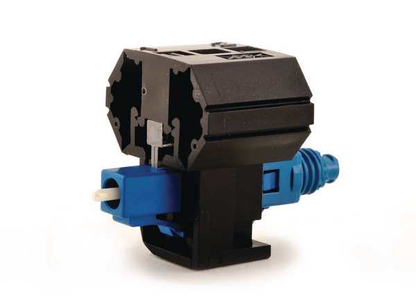 - Features a latched lever mechanism to provide secure mating into the adaptor