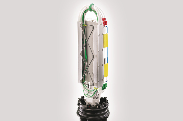 The FRBU 9 Port B Length closure is supplied with a Polypropylene base. The base configuration of 8 round ports and 1 oval port covers a cable diameter range of 1.7 – 20.0mm when using Cablelok mechanical seals and 6.0 – 24.0mm when using heatshrink. The mounting system is manufactured from Grade 304 stainless steel and is supplied with 3 x Hellapon Medium Side Hinged Trays and basket fitted with crimp/ANT splice bridges giving a maximum of 72 fibre splices. The fibre basket provides storage space for the storage of fibre loops within the closure. The tubed closure and the position of the mounting system allows for ease of access and traceability of the fibre on to the trays. The trays are white which makes it easy to see the colour of the fibre elements as they are routed through the fibre management system and on to the trays. |
