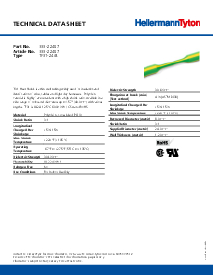 | Description | TF31 Heat Shrink is a thin wall tubing widely used for insulation and identification of wires, cables and light duty harnesses. Polyolefin material is highly flame retardant with a high shrink ratio. Available in a wide range of colors and diameters up to 1.57" (40.0mm) with various lengths. TF31 is UL224 125 °C 600V VW-1, CSA and RoHS. |