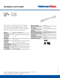 | Description | TF31 Heat Shrink is a thin wall tubing widely used for insulation and identification of wires, cables and light duty harnesses. Polyolefin material is highly flame retardant with a high shrink ratio. Available in a wide range of colors and diameters up to 1.5" (40.0mm) with various lengths. TF31 is UL224 125 °C 600V VW-1, CSA and RoHS. |