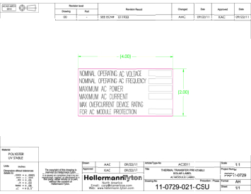 | Technical Description | 4" X 2" White text on red background that reads as: "NOMINAL AC VOLTAGE;NOMINAL OPERATING AC FREQUENCY;MAXIMUM AC POWER;MAXIMUM AC CURRENT;MAXIMUM OVERCURRENT DEVICE RATING FOR AC MODULE PROTECTION." 50 per roll. Label is also printable using a thermal transfer printer to add the variable voltage information on demand. |