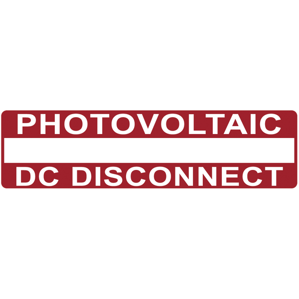3.75" X 1" White text on red background that reads as: "PHOTOVOLTAIC DC DISCONNECT." - 50 per roll. Label is also printable with variable information by the installer. |