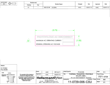 | Application | For use on the AC Disconnect. Variable print can be added using a thermal transfer printer. |