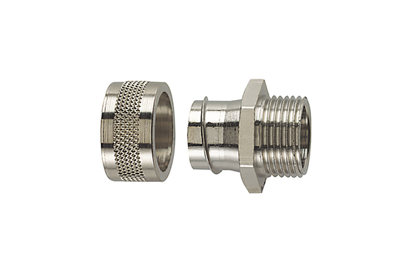 | Application | Fixed external thread, nickel plated brass. |