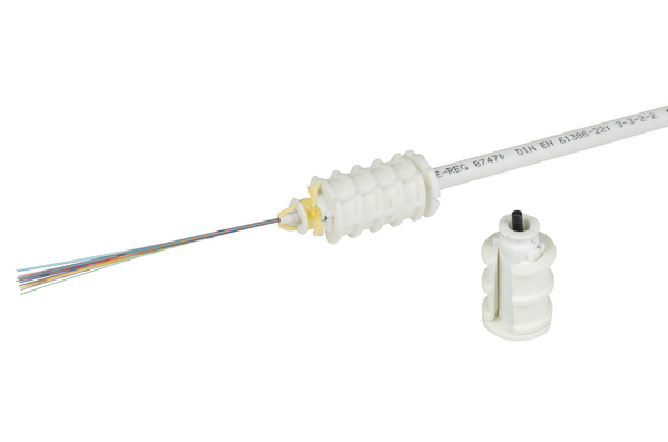| Application | The flame retardant, halogen-free and divisible seals EZA-t indoor are reusable and suitable for sealing empty and occupied speedpipe indoor. The integrated safety valve opens before a possible injection pressure of 10 bar is reached when blowing in fibre optic cables. In addition, two cut-outs allow the aramid yarn of the fiber optic cable to be used for tension absorption. |