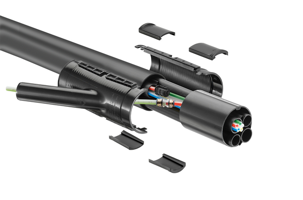 | Application | Apertures of existing duct systems for branching off standard cables or internal speedpipe are closed safely and simply. Thus no manhole is necessary any more for branching off from a duct system. Install the branches wherever you want to minimize or optimize your routes. Due to the mechanical protection of the branch point you receive optimum results at blowing in fibre optic cables into the internal speedpipe even after decades. |