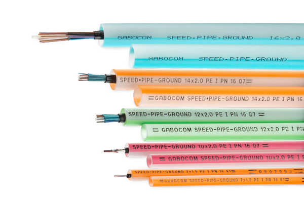 | Application | For the extension or new construction of passive infrastructure in fibre optic expansion. speedpipe ground are suitable for direct burying in all FTTx-sections as well as für branching-off from existing duct routes. Due to the dimensionally stable wall thickness made from first-class PE-HD protects each speedpipe ground duct system against the emerging ground pressure. Due to a higher vertex pressure in comparison to for example a PE-HD duct 50 × 4.6 the pipes stay in shape. Sliding ribs specified for any dimension ensure an optimal air cushion of the fibre optic during the blowing-in process, even after decades. |