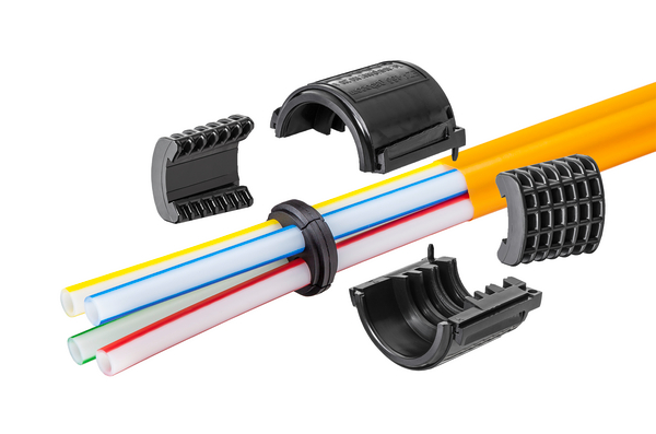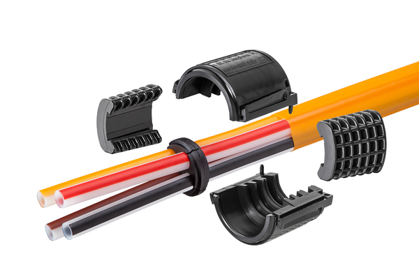 | Application | speedpipe bundles ground SRV-G tc bundle various colored, thick-walled speedpipe ground by means of a tight outer sheath. Due to the variety of single duct dimensions of the speedpipe ground and their combination within the bundle, you consider spare capacities for the future. Our system concept is reflected in the protective function and the ease of assembly of the tight outer sheath: it is rugged against the impacts of the surrounding soil, but nevertheless can be opened quickly, easily and safely for branching-off from the bundle. |
