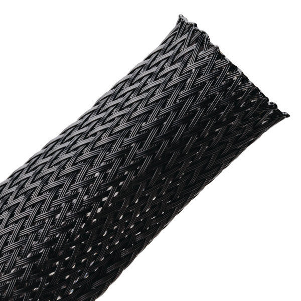 Braided sleeving, nom⌀15.88mm, ⌀2.54-15.2mm, black, 30.48m