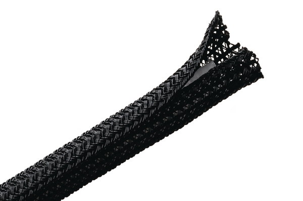 Braided sleeving, nom⌀12.7mm, ⌀2.54-12.7mm, black, 45.7m