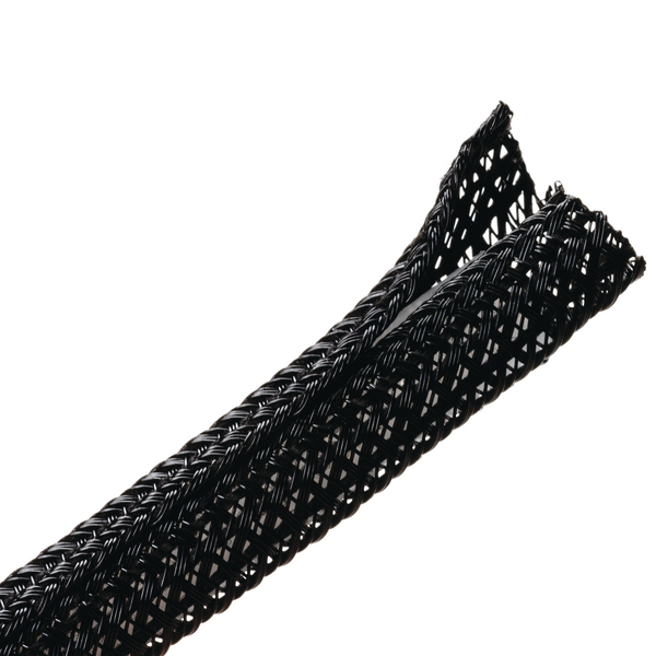 Braided sleeving, nom⌀6.4mm, ⌀2.54-6.4mm, black, 30.48m