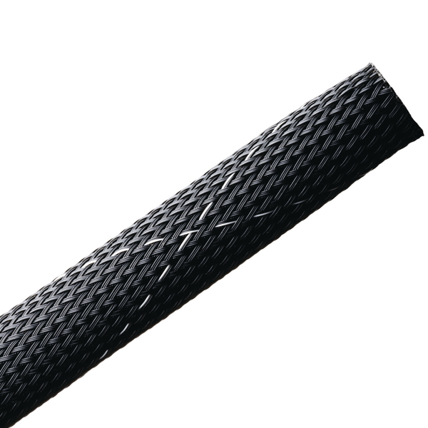 Braided sleeving, nom⌀19.1mm, ⌀15.9-25.4mm, black, 76.20m
