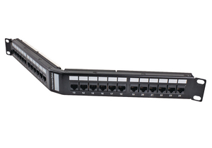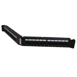 The Universal 110 Angled Category 6 range of panels offer exceptional performance and are available in 1U 24 port and 2U 48 port configurations. The 1U 24 Port Angled Panel is constructed of 4 modular units, each offering 6 RJ45 ports allowing for any of the 6 port modules to be replaced in the case of damage or failure. The angled design of the panel removes the need for the use of front cable management increasing capacity by up to 50%. The Universal 110 1U 24 Port Angled Patch Panel is supplied with Rack Snap, Cage Nut or 12-24 rack screw fixings and an optional rear cable manager is available. The Universal 110 Angled Category 6 products are designed to support any data or voice protocol that is capable of running over a Category 6 cabling system. |
