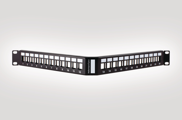 | Technical Description | Manufactured from black powder coated mild steel. The angled presentation increases rack capacity by allowing patchcords to be directed to the vertical cable management and aids correct cable bend radius. The Modular panels are designed to accept HellermannTyton Connectivity's unshielded keystone jacks which are available in CAT6A, CAT6 & CAT5e. They are supplied as standard The rear cable management bar is sold separately. |