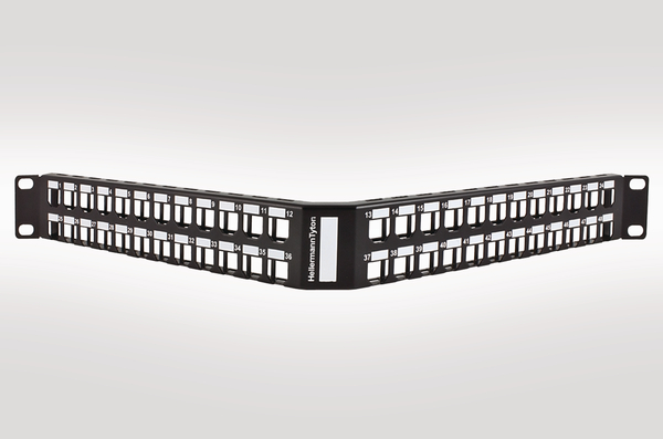 | Technical Description | Manufactured from black powder coated mild steel. The angled presentation increases rack capacity by allowing patchcords to be directed to the vertical cable management and aids correct cable bend radius. The Modular panels are designed to accept HellermannTyton Connectivity's unshielded keystone jacks which are available in CAT6A, CAT6 & CAT5e. They are supplied as standard unloaded. The rear cable management bar is sold separately. |