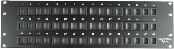 | Description | The modular patch panel is designed to accept HellermannTyton Category 6A, 6 and 5e UTP modular jacks and connectors, providing flexibility in multimedia installations. These modular panels can be mounted to any standard EIA 19" rack, cabinet or wall mount patch panel bracket. HellermannTyton pre-numbered modular patch panels are available in 12,16, 24, 32 and 48 port configurations. |