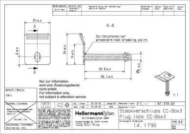 A simple to insert and securely located plastic plug seal is required when locking the lid into the box body of a container. This ensures that the lid remains in place during transit and acts as a tamper-evident method of ensuring the contents of the box have not been tampered with or removed. The design of the seal will allow for the lid to move slightly laterally, as is normal when boxes are being stacked or are in transit, and strong enough for small vertical drops (up to 0.5 m) without breaking. The seal is designed to break if the lid is lifted. 30 years of experience in the design and manufacture of plug seals mean that we are uniquely placed to offer products to solve your needs when new lidded box design are being considered. |