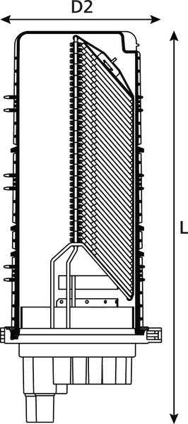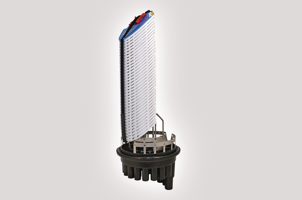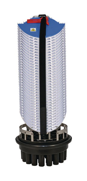 The UFC C Length Single Stack closure is available with a Cablelok (Polypropylene) or Heatshrink (Flame Retardant Polypropylene) base. The base configuration of 28 round ports and 2 oval ports covers a cable diameter range of 4.0 – 29.0mm when using Cablelok mechanical seals and 6.0 – 35.0mm when using heatshrink. The mounting and support system is manufactured from Grade 304 stainless steel and is supplied 36 x SMF SE-A trays giving a maximum of 864 fibre splices. The tubed closure and position of the mounting system allows for ease of access and traceability of the fibre on to the trays. The trays are white which makes it easy to see the colour of the fibre elements as they are routed through the fibre management system and on to the trays. |