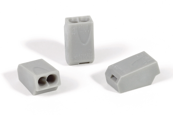 Push-in wire connector, 2 conductors, 1.0 - 2.5 mm² solid, grey, 500pcs.