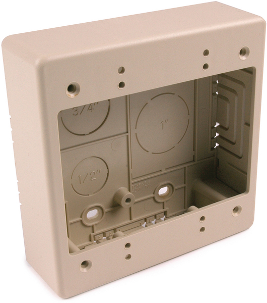 | Description | Offered in a dual or single gang format, HellermannTyton’s power-rated junction boxes are versatile enough for any network cabling application. Available in varying depths, these boxes are all equipped with concentric knockouts on all four sides for every TSRP size of raceway to eliminate routing and installation inconvenience. All junction boxes come with adhesive strips on the back of the base and #6 screws to secure the box to the base. |
