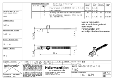 | Grupo de produto | Abraçadeiras de fixação de 1 peça com rebite, reutilizáveis |