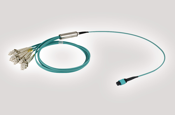 O MTP para Fan Out LC foi projetado para fornecer uma interconexão de alta densidade que usa um espaço mínimo, tornando-o uma solução ideal para conexão de hardware ativo em data centers onde o espaço é escasso. O conector MTP oferece conectividade de alta densidade e o Fan Out LC fornece 12 conectores LC. O cabo Fan Out é um cabo com vários núcleos que tem um diâmetro menor do que o cabo de fibra padrão e, portanto, ocupa menos espaço nas bandejas e trilhos. |