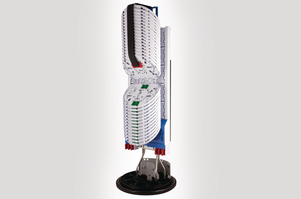 - Gerenciamento positivo de fibra para assegurar raio de curvatura consistente mínimo de 30mm