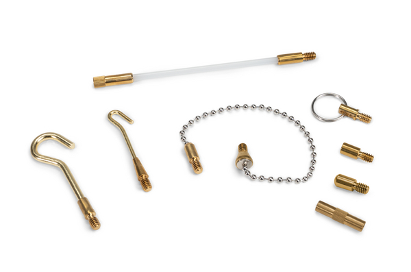 - Kit de acessórios: inclui uma ponta flexível de 15cm de comprimento, conversor de género, mini gancho, gancho resistente, mini olho,