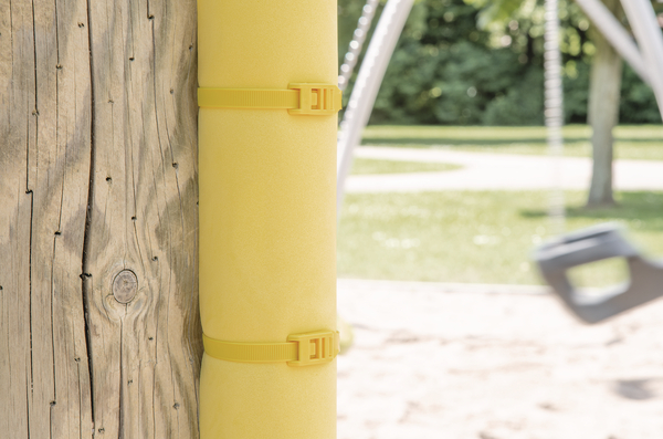 | Application | These ties are particularly useful in areas with restricted space. The low profile design ensures that nothing snags on the heads. Coloured low profile cable ties are ideal for securing foam padding to playgroud equipment or as a simple means of identifying equipment. |