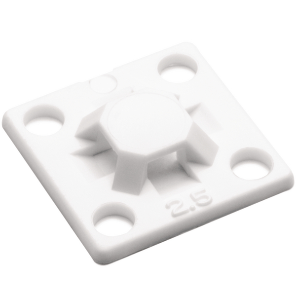 Cable tie mount for screw fixation, Wmax=2.54mm, ⌀2.8 mm, #3 Screw, white, 100pcs.