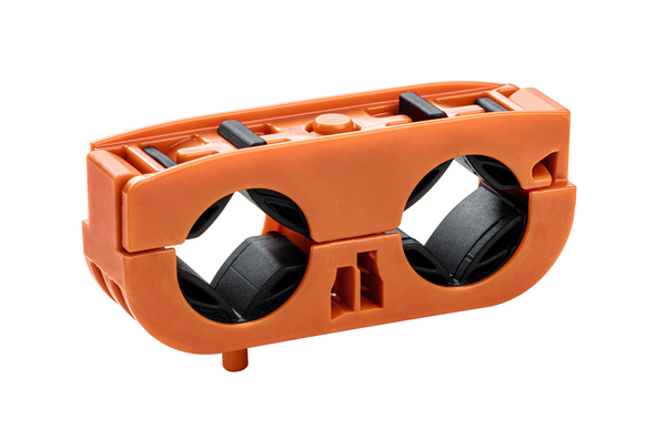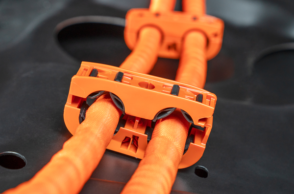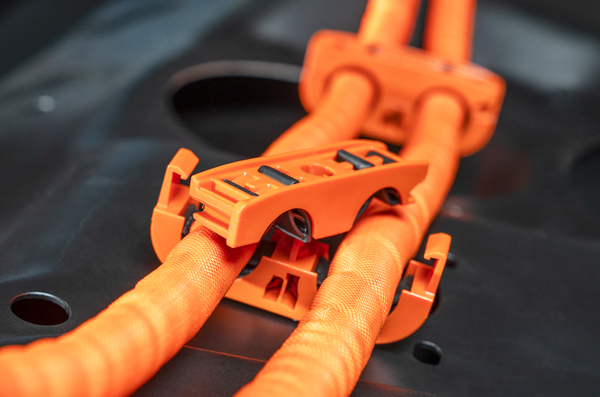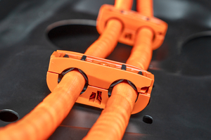 These clips are used for the installation of high-voltage cables in the automotive industry or electric vehicles. The robust clip and soft insert protect and guide the cables stably and optimally even under strong vibrations, keeping the cables parallel. |