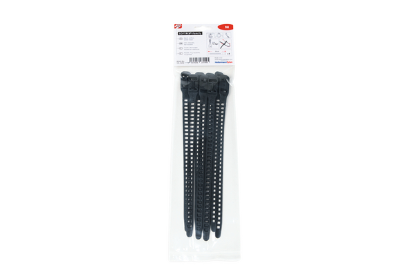 | Application | The soft, flexible material makes these ties particulary suitable for use on sensitive wires, for instance fibre-optic cables. Additionally they are suitable for moving elements and vibrating applications. The double slotted head allows for parallel bundling. |