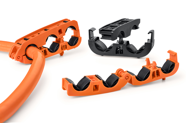These clips are designed for the installation of high voltage cables in the automotive sector or electric vehicles in general, but can be used for any application requiring parallel wiring. The sturdy clip fixes and guides cables and corrugated conduits in a stable and optimal way, keeping the wiring parallel even in the presence of strong vibrations. The HV-Clips are available as CLP, CMP and CHP parts. The "L" stands for lower performance (EPDM), the "M" for medium performance (heat resistant + AEM) and the "H" for high performance (PA46 + AEM). The HV clips can also be produced with other material combinations or are already available. |