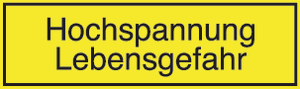 | Short Description | Warning sign Hochspannung Lebensgefahr 52.00x18.00 mm yellow with black print |