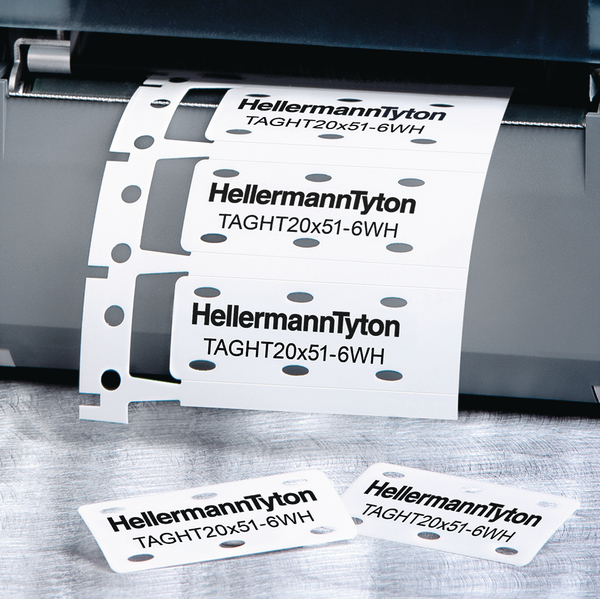 TAGHT is a high temperature, flame retardant cable marker used to identify larger cables and wire harnesses. The marker is ideal for applications where high temperatures and exposure to aggressive solutions are found, e.g. in the aerospace industry. They are supplied pre-cut and have been formatted into a convenient "ladder" system. Simply print and press out the required TAGHT and apply to cables and harness assemblies with cable ties, they are also suitable for retrofit purposes. Print with HellermannTyton's premium range of thermal printers and ribbons or a laser beam marking device. |