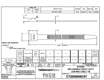 | Uygulama | RT250, geri açılabilir bir kablo bağıdır. 1.115 N'luk minimum döngü çekme dayanımı sayesinde bu kablo bağı, daha büyük ve/veya daha ağır kablo demetlerini sabitlemek için biçilmiş kaftandır. RT250, açılıp tekrar kullanılabilir. PA66W malzemeden üretilen UV dirençli kablo bağları, dış mekân uygulamaları için önerilir. Daha kısa uzunluklarda REL250 Serisi önerilebilir. |