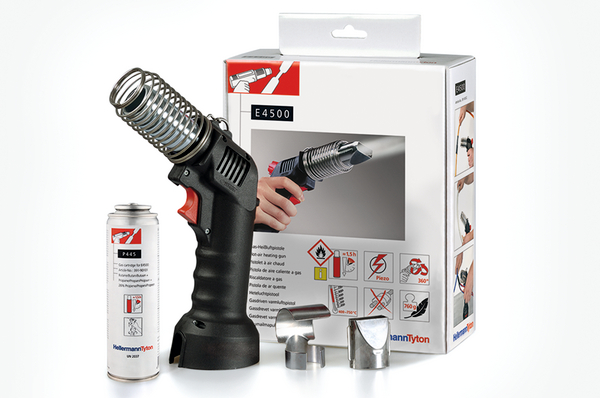 | Uygulama | E4500 sıcak-hava tabancası, çalışılması zor alanlarda ve herhangi bir güç kaynağının bulunmadığı yerlerde çalışmak için idealdir. Tabanca, makaronlar, başlıklar ve kablo onarım kitleri gibi her çeşit ısıyla daralan ürünlerin uygulamaları için uygundur. Keza, PVC boruların bükülmesi ve biçimlendirilmesi, bakır boruların yumuşak lehimlenmesi, kurutma, buz çözme (kilitlerin), ısıtma ve boya püskürtme maksatları için de kullanılabilir. |