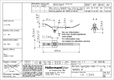 | Ürün Grubu | Ok Uçlu, Şeritte Kanatlı 1-Parça Kendinden Tespitli Kablo Bağı |